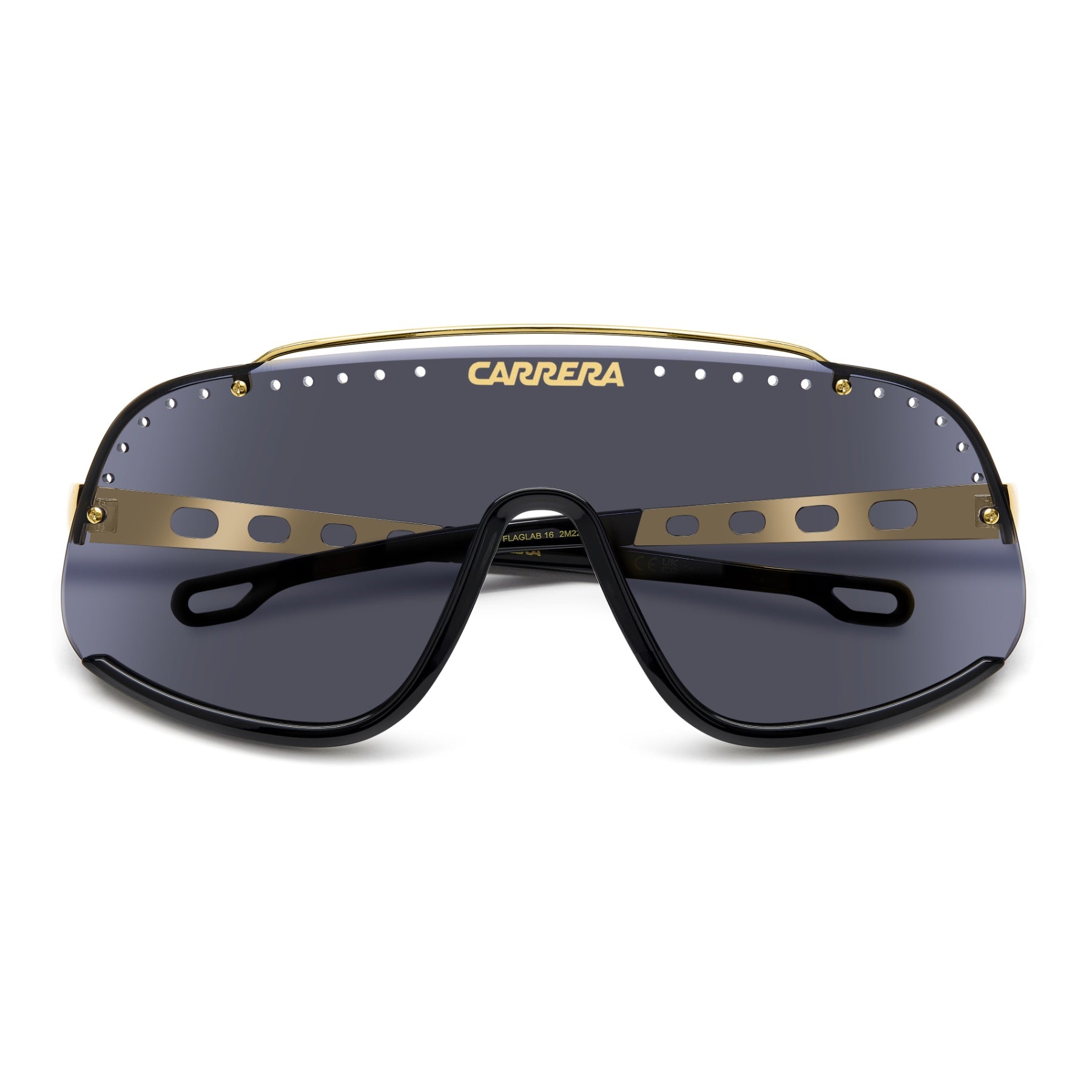 Gafas de sol Carrera unisex con diseño pantalla, detalles metálicos y referencias al automovilismo clásico. Un modelo de inspiración vintage, disponible con lentes de espejo, que incluye funda especial de coleccionista.